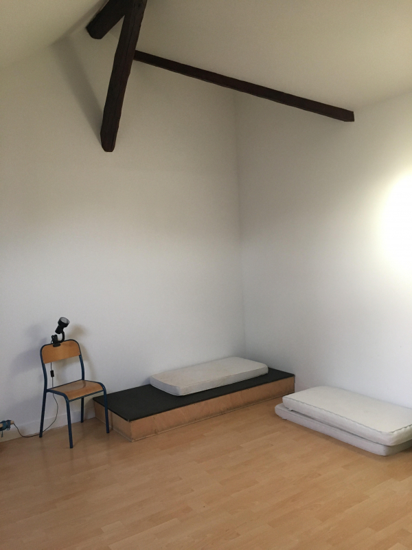et une très grande chambre d'environ 25m2 (ou plus ?) et hauteur sous plafond -à certains endroit d'environ 4m (actuellement encore occupée par mon fils) la ou les chambres à louer sont vides pour l'instant (pas de lit ou de meubles)