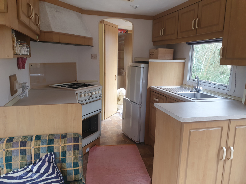 Salon lumineux, cuisine equipee (microondes, frigo, congelateur, cafetiere, grille pain, cuisinière)