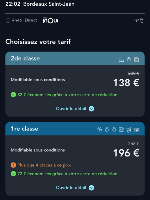 Retour : LILLE BORDEAUX DIRECT IN OUI du 29 juillet 2024 Départ 17h16