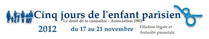 Du samedi 17 au mercredi 21 novembre 2012, auront lieu 5 jours d’information sur la filiation et l’autorité parentale : "L’enfant parisien", à l'initiative de l'association Le droit de te connaître.