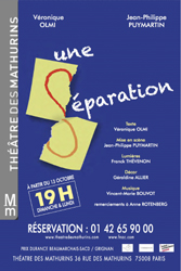 A partir du 13 octobre 2013, au Théâtre des Mathurins, Véronique Olmi, elle-même interprètera le rôle féminin de sa pièce "Une Séparation", accompagnée par Jean-Philippe Puymartin qui incarnera son ancien compagnon, et qui, par ailleurs, signe la mise en scène. Les lumières sont créées par Franck Thévenon et la musique est signée Vincent-Marie Bouvot.