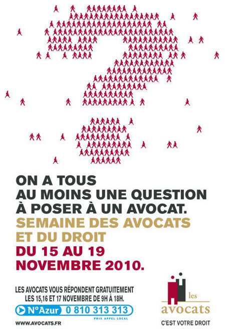 Alors que le recours à un avocat peut paraître compliqué et coûteux, les avocats vont à la rencontre des citoyens en répondant à toutes leurs questions du lundi 15 au mercredi 17 novembre, de 9h à 18h, au numéro de téléphone Azur 0810 313 313 (prix d’un appel local). Chacun pourra ainsi bénéficier gratuitement d’un conseil juridique personnalisé et pertinent par un avocat de sa région, quel que soit le domaine de compétence (droit de la famille, droit pénal, assurance, droit du travail…). Des consultations juridiques rapides, gratuites et personnalisées partout en France.