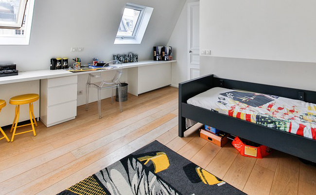 Si deux enfants partagent la même chambre, pour gagner de la place, le recours aux lits superposés reste une solution très pratique qui plait généralement aux occupants. Cela permettra de trouver l’espace nécessaire pour caser des bureaux !